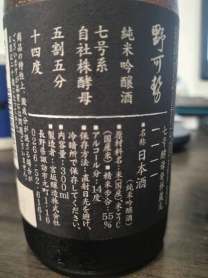また、成城石井限定としてデザインされた黒いラベルと瓶は、洗練された印象を与え、贈答用としても人気があります。価格も手の届きやすい範囲に抑えられており、上質ながら日常的に楽しめる“ちょっと贅沢な一本”として位置づけられています。総じて「真澄 純米吟醸 野可勢」は、華やかさと落ち着きを併せ持つ調和の酒であり、飲む人の心に静かな余韻と満足を残す、まさに真澄の美学を体現した一本といえるでしょう。
