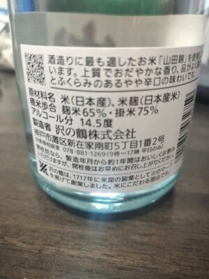総じて、「沢の鶴 純米酒 山田錦」は、長い伝統と確かな技術に裏打ちされた、米の旨味を素直に楽しめる純米酒です。派手さこそないものの、飲むほどに深い味わいを感じさせる、まさに“灘の酒”の真髄を体現した一本といえるでしょう。
