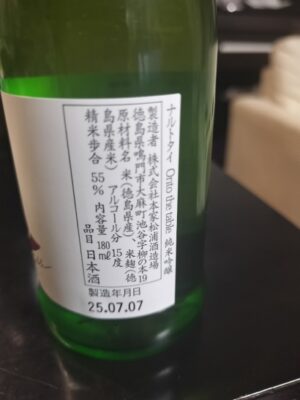 原料には徳島県産米を100%使用し、精米歩合は55%。米の旨味を引き出す丁寧な吟醸仕込みで、香りと味わいのバランスを追求している。アルコール度数は15度前後で、軽やかな口当たりとすっきりとした後味が特徴。立ち香は控えめで、青リンゴや白い花のような上品な吟醸香がふんわりと広がる。口に含むとほのかな甘みと酸のキレが調和し、淡麗ながらも柔らかい米の旨味を感じさせる。全体として軽快で、白ワインのような印象を持つ純米吟醸であると蔵元は語る。冷やして飲むとシャープで爽やか、ぬる燗にすると旨味がふくらみ、香りが一層まろやかに広がるなど、温度によって表情が変わるのも魅力の一つだ。