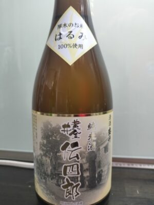 純米酒「黄金井伝四郎(厚木産はるみ使用)」 は、神奈川県愛甲郡愛川町の老舗蔵・黄金井酒造が醸す、地域密着型の純米酒である。創業1818年の黄金井酒造は、丹沢山系の清らかな伏流水を仕込み水とし、地元の風土を生かした酒造りを続けてきた。銘柄名の「伝四郎」は創業家の初代・伝四郎に由来し、蔵の歴史と伝統を象徴する一本である。本酒は特に、厚木産の酒米「はるみ」を使用しており、地元の恵みを味わいに反映させた純米酒として知られる。