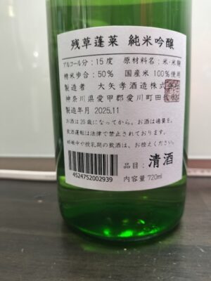「残草蓬莱 純米吟醸」は、派手さよりも“飲み飽きしない美しさ”を追求した酒であり、神奈川の地酒の中でも個性的かつ完成度の高い一本として広く愛されている。