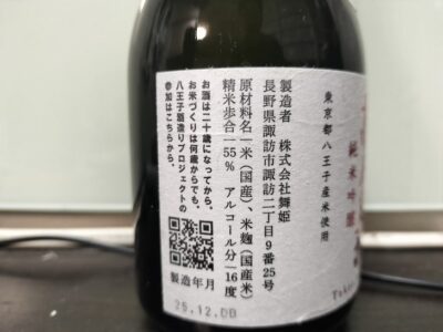 八王子のお酒なのに酒造は長野県の諏訪湖。
