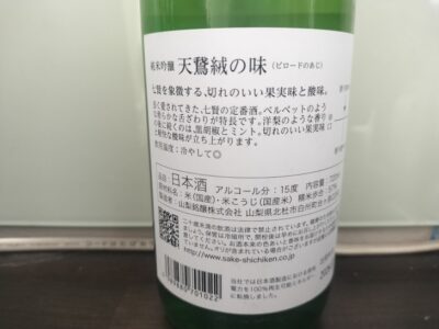 銘柄の「七賢(しちけん)」は、甲斐国の名水の地・白州の仕込み水を活かした酒として知られ、南アルプスの伏流水による清冽な酒質が特徴。この「天鵞絨の味」はその中でも、特に口当たりの良さと調和を重視した純米吟醸酒である。