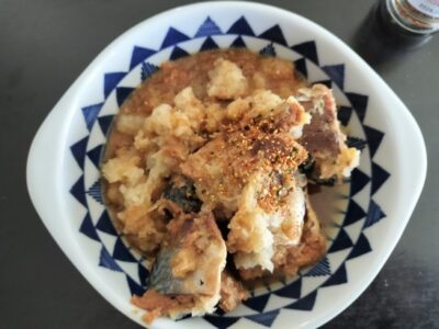 サバ缶のみぞれ煮 2026/4/12 2026/4/12 おつまみ そういえばこのページは親父飯だった。 いつの間にかお酒ばかり載せていました。 最近は健康を考えて鯖缶を食べようと努力しているのですが、なかなか進まず。 良いレシピ無いかなと探したら、ありました。みぞれ煮。 サバ缶をフライパンに開けて、温めて、最後に大根おろしをかけるだけ。 簡単でいいですね。 最後に七味唐辛子をかけるとつまみとしてばっちりでした。 日本酒にはこれだなぁ。 にほんブログ村 にほんブログ村 にほんブログ村 にほんブログ村
